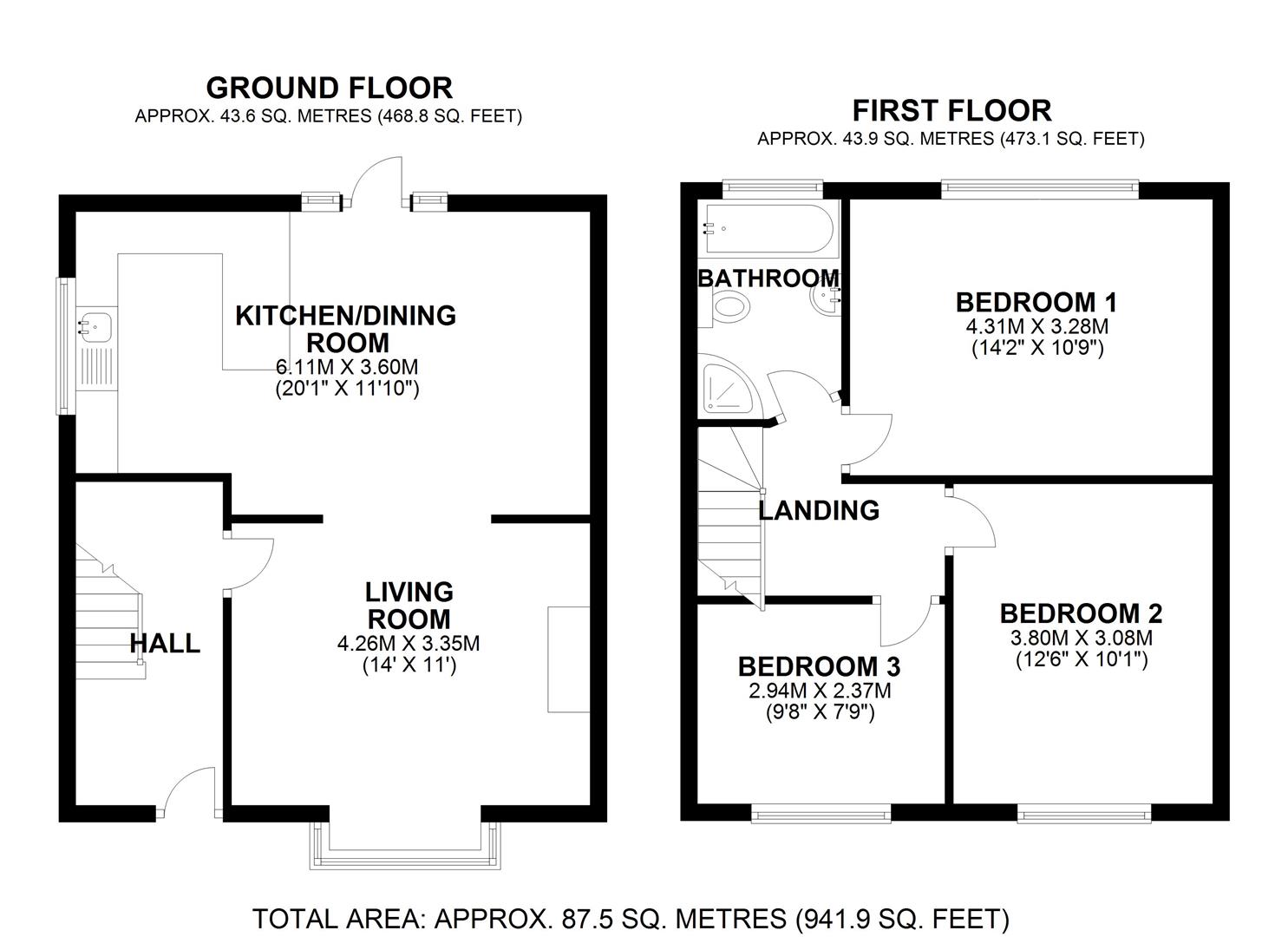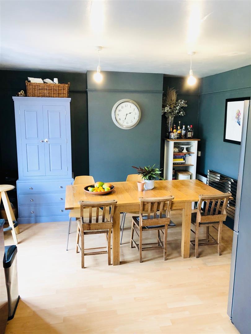 The ground floor comprises of a large lounge with bay window, wooden floors and and feature fireplace and just down the hall is a good sized kitchen diner with built in oven & hob, dishwasher & washing machine. There is a free standing fridge freezer.