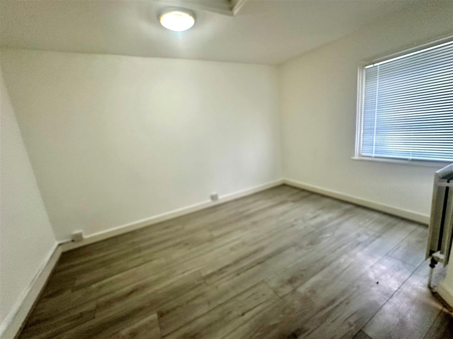 The property has a large lounge with two good sized windows for light and a decorative fireplace, it also have freshly painted white walls and grey laminate flooring